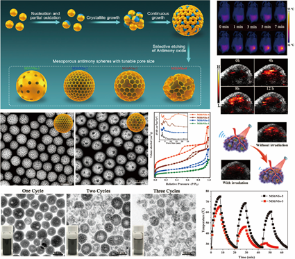 近期,课题组在锑纳米材料的可控制备方面再次取得重要进展,发展了一种选择性氧化刻蚀的方法,在国际上首次报道了单分散介孔结构锑纳米颗粒的可控制备,并对其近红外二区光声成像、光热转换效率和药物运输性能进行了系统研究。研究结果显示,该材料不仅展现出较好的二区光声、光热转换和药物运输性能,还具有可控光热降解特性。相关研究工作发表在国际著名期刊Nature Communications (DOI: 10.1038/s41467-021-27835-y)上。该研究为后续多功能化锑纳米探针的设计和生物应用提供了重要参考。 上述研究得到了国家自然科学基金、广东省特支计划杰出人才项目、广东省自然科学基金研究团队项目及深圳市科技创新委员会项目支持。