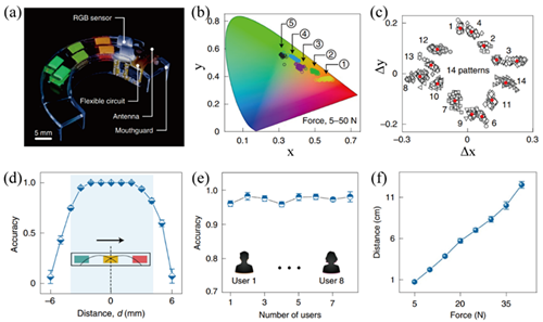 图:一种基于应力发光,智能算法的交互式护口器 (Nat Electron, 2022, 5, 682)