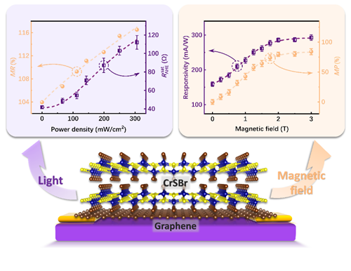 近日,重点实验室的曾昱嘉教授课题组在《ACS Nano》(中科院一区,影响因子15.8,自然指数期刊)上在线发表了题为“Revealing Light-Magnetism Coupling via Anomalous Hall Effect and Magneto-Photoresponse in Proximity-Coupled CrSBr/Graphene Heterostructures”的研究成果。我院曾昱嘉教授、Aymeric Ramiere副教授为共同通讯作者,硕士研究生吴晓铿为第一作者。