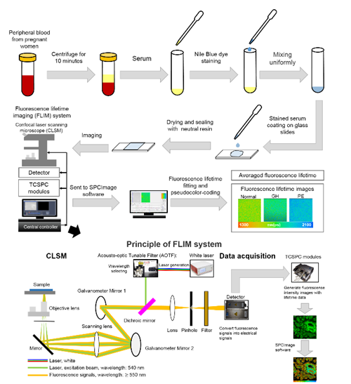 图1 用FLIM技术诊断子痫前期的工作流程示意图