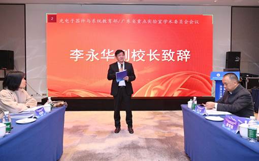 会议首先由刘丽炜教授主持,李永华副校长代表学校致欢迎辞。李校长感谢各位委员在百忙之中参加学术会议,向长期以来对重点实验室建设和发展予以大力支持的各位专家致以衷心感谢,并希望各位专家对实验室的未来发展提出宝贵意见和建议。李校长表示,学校将持续全力支持重点实验室的建设和发展,推动光电子器件和系统的创新研究,助力前沿技术的突破,促进实验室的高质量发展。