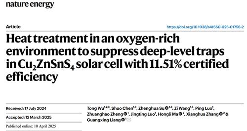 深圳大学Nature Energy:梁广兴研究员团队发表铜锌锡硫薄膜太阳电池研究最新成果